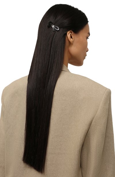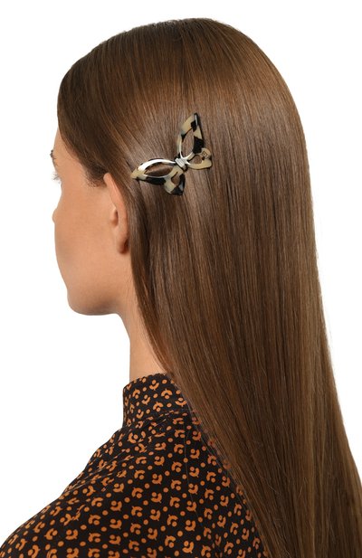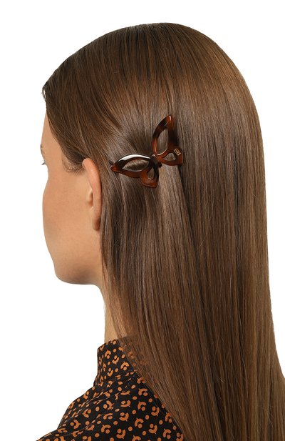 Изящная форма банта компенсирует спокойный чернильно-синий цвет этой заколки с миниатюрной контрастной эмблемой бренда. Небольшой аксессуар с креплением из прочного сплава вручную выполнен из легкого гладкого ацетата с глянцевым блеском.