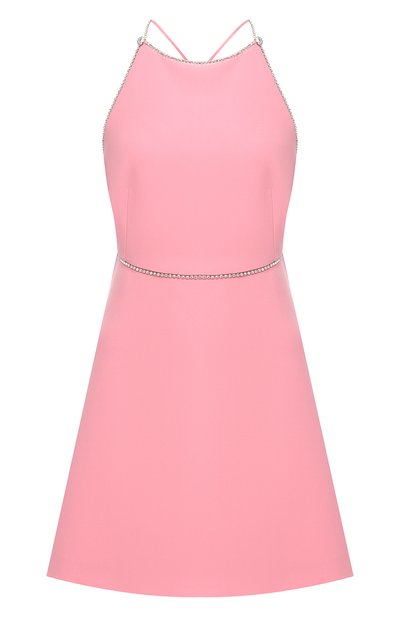 В создании женственного образа платью из весенне-летней коллекции нет равных: здесь и открытая спина, и сверкающие кристаллы, и нежный розовый цвет, будто позаимствованный у десертов. Для пошива модели Миучча Прада выбрала плотный, но легкий и мягкий кади.
