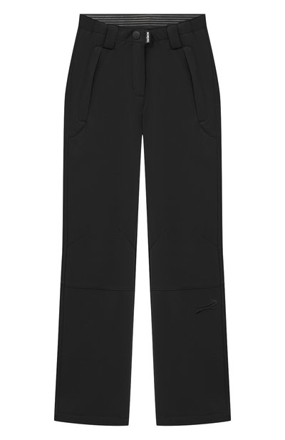 Прямые черные брюки словно созданы для прогулок в прохладную погоду (от +5 до +18 градусов). За комфорт отвечает тонкий и при этом очень прочный мембранный материал Softshell, внутренний флисовый слой которого удерживает тепло, пропускает воздух и отводит влагу, а внешний – защищает от осадков и ветра и отталкивает загрязнения. За счет обработанных эластичной лентой швов модель не сковывает движения.