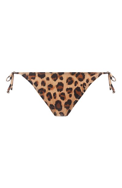 Дерзкий леопардовый принт на этих плавках-бикини не поблекнет со временем. Все дело в тонком, но при этом прочном эластичном нейлоне, который не боится воздействия соленой и хлорированной воды. Узкие боковые ленты отвечают за комфортную посадку на бедрах.