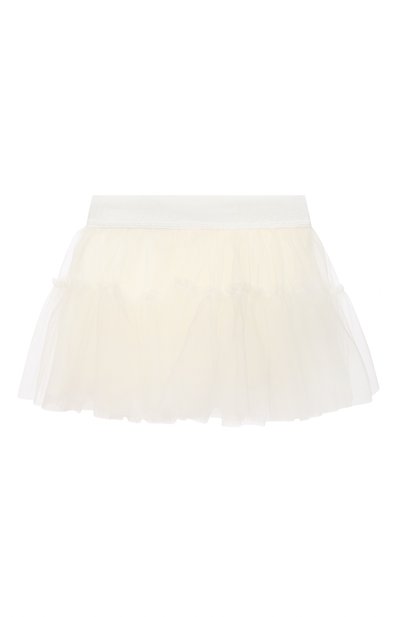 Белая двухслойная мини-юбка с широким эластичным поясом-резинкой настолько мягкая и легкая, что почти не ощущается на теле. Нижний слой выполнен из приятного на ощупь кремового хлопка, верхний — из воздушного полупрозрачного тюля.