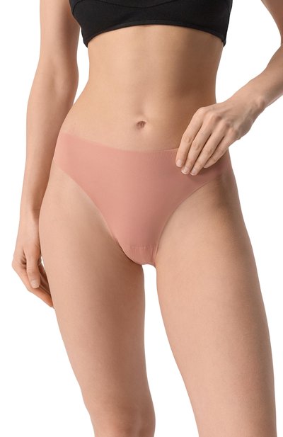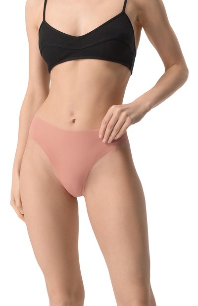 Бесшовные трусы с плоскими краями выполнили из эластичной микрофибры Soft Stretch на основе нейлона. Стринги дополнили хлопковой ластовицей.