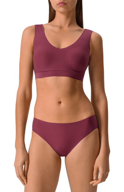 Бесшовные трусы с плоскими краями выполнили из эластичной микрофибры Soft Stretch на основе нейлона. Стринги дополнили хлопковой ластовицей.