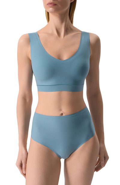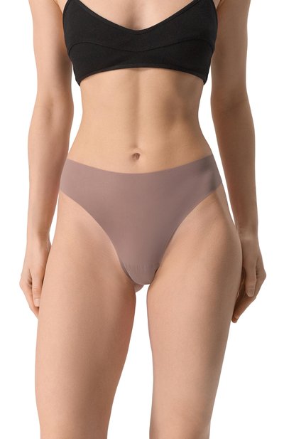 Бесшовные трусы с плоскими краями выполнили из эластичной микрофибры Soft Stretch на основе нейлона. Стринги дополнили хлопковой ластовицей.