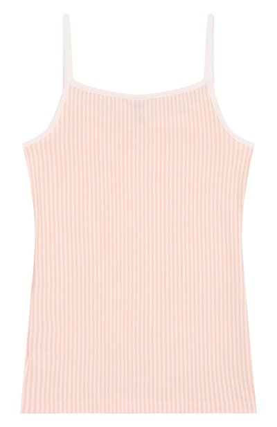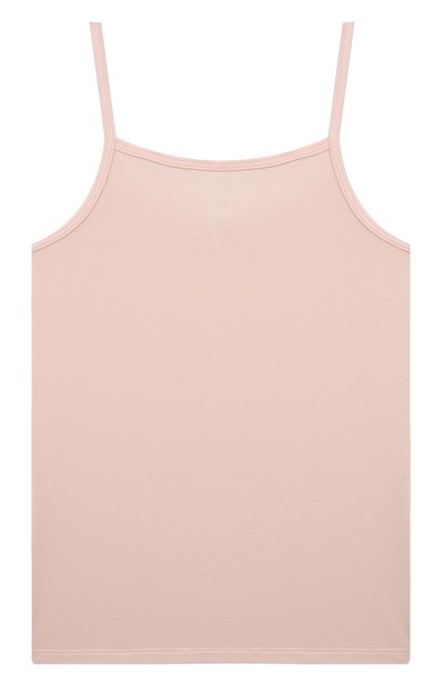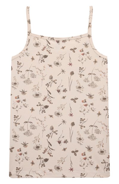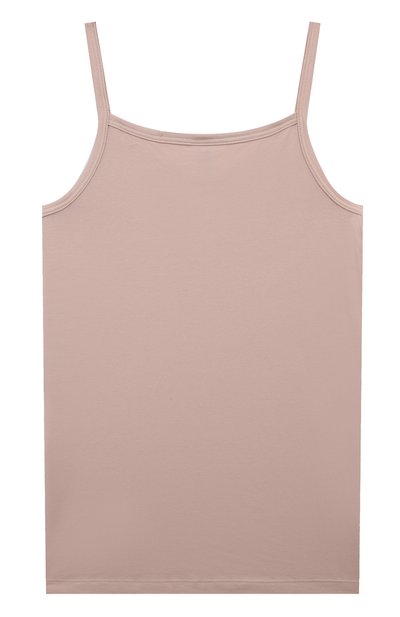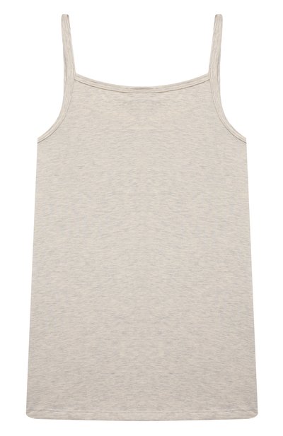 Легкая майка нейтрального бежевого цвета сшита из органического хлопкового трикотажа. Материал предварительно обработали с применением нехимических веществ, за счет чего он не вызывает аллергии и долго сохраняет первоначальный вид. Вырез спереди обрамили полупрозрачным кантом.