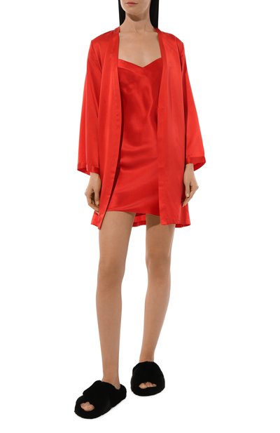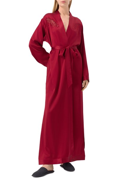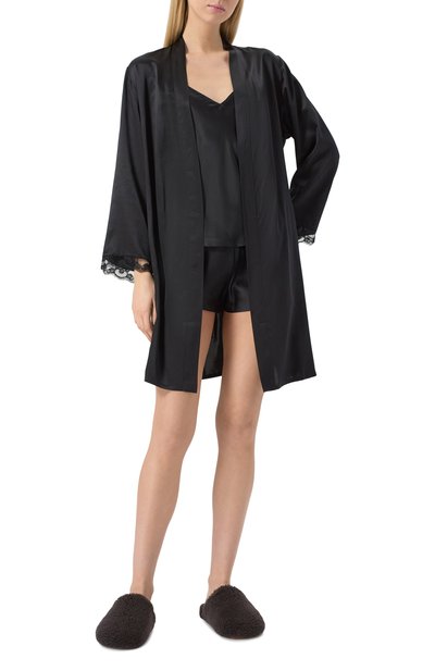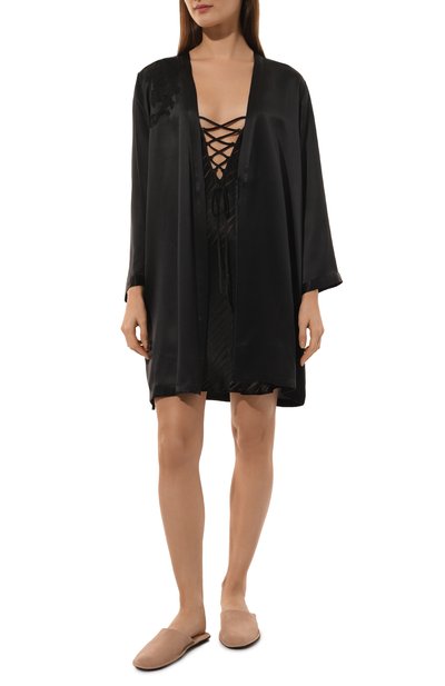 Для пошива халата из линии Basic Seduction использовали шелковый атлас. Модель с боковыми разрезами и карманами завязывается съемным поясом-лентой.