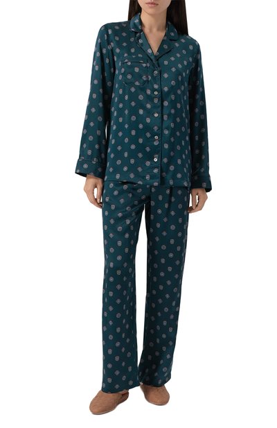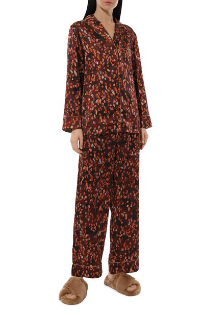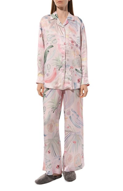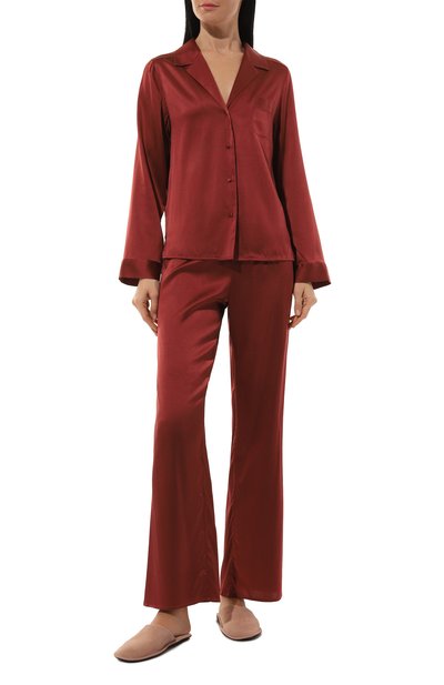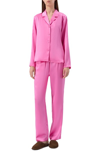 Пижаму из гладкого шелкового атласа включили в коллекцию Basic Seduction. Свободную рубашку дополнили нагрудным карманом, а широкие брюки – эластичным поясом.