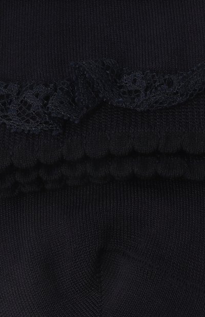 Темно-синие носки на ощупь и внешне напоминают шелковые. На самом деле их связали из хлопковой пряжи, которая прошла процесс мерсеризации. Нити обработали щелочным раствором, а затем промыли в горячей и холодной воде. Такое белье получается нежным и прочным одновременно. Для большего эффекта мыс и пятку усилили.