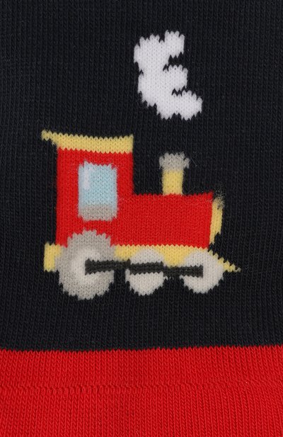 Носки изготовили из стрейчевого трикотажа на основе лиоцелла и полиэстера. Модель украсили изображением футбольного мяча, выполненным в технике интарсии.