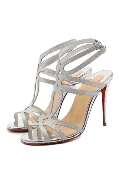 Босоножки Renee деликатно переливаются в движении. Все дело в россыпи серебристого мерцающего глиттера, которым Кристиан Лубутен украсил узкие фигурные перемычки. Высокую шпильку отделали мягкой металлизированной кожей в тон. За идеальную посадку отвечают регулируемые ремешки.