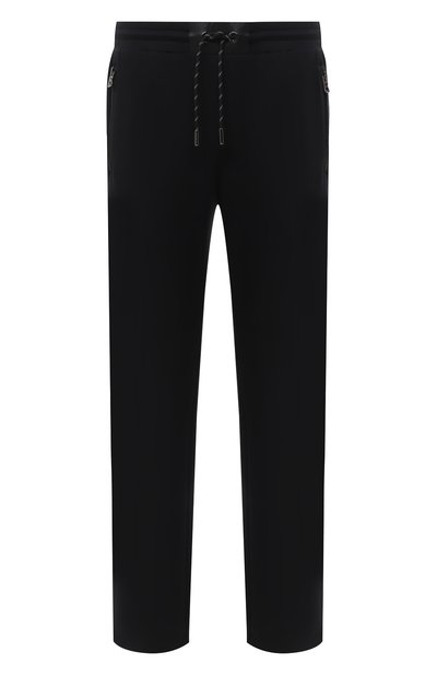 Черные однотонные брюки с поясом-кулиской будто созданы для долгих прогулок. Гладкий хлопковый трикотаж с добавлением модала хорошо пропускает воздух, а прямой крой не сковывает движения. По бокам — врезные карманы на молниях, сзади — накладной. Модель вошла в осенне-зимнюю коллекцию.