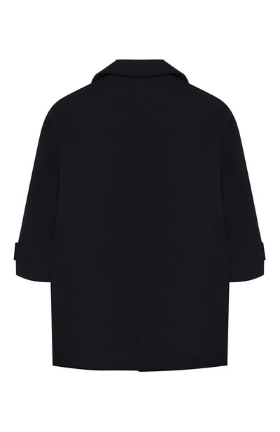 Синее однобортное пальто из смеси прочных полиэстера и шерсти не пропускает ветер и при этом не колется. Изделие с широкими лацканами дополнили объемной отделкой на воротнике, которая также защищает лицо от холодного воздуха. Спереди — два накладных кармана.