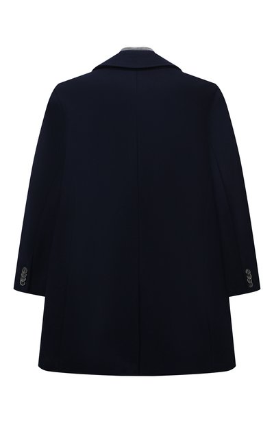 Синее однобортное пальто из смеси прочных полиэстера и шерсти не пропускает ветер и при этом не колется. Изделие с широкими лацканами дополнили объемной отделкой на воротнике, которая также защищает лицо от холодного воздуха. Спереди — два накладных кармана.