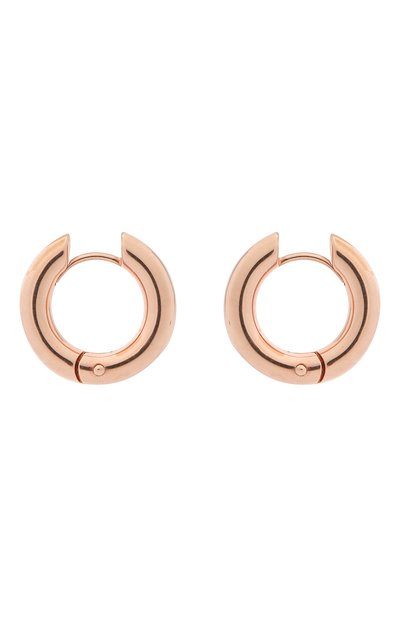 Предельно лаконичная форма и полное отсутствие декора превратили эти широкие серьги-кольца в идеальное украшение на каждый день. Ювелиры марки выполнили небольшой, приятно-тяжелый аксессуар из отполированного до блеска стерлингового серебра и покрыли розовым золотом.