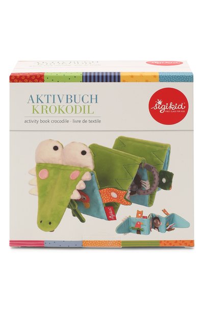 Мастера марки выполнили интерактивную игрушку в виде крокодила из приятного на ощупь гипоаллергенного бархатистого текстиля. Модель раскладывается, как гармошка, а внутри ребенка ждет знакомство с тропическими животными и птицами. Объемные детали помогут испытать разные тактильные ощущения, шелестящие вставки издают звуки, а крупное кольцо можно использовать вместо прорезывателя.