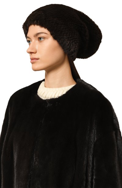 Для изготовления коричневой шапки с драпированным эффектом, напоминающим мягкие складки на шкуре шарпея, мастера марки использовали легкий пушистый мех норки. Плотная подпушь задерживает теплый воздух внутри даже при сильных морозах, а длинная шелковистая ость мягко сияет на свету разными оттенками радуги. Запатентованная плиссированная подкладка сохранит прическу в идеальном состоянии.