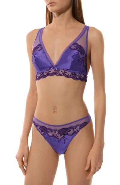 Слипы из шелкового атласа и полупрозрачного нейлонового тюля украсили рельефной цветочной вышивкой. Трусы из коллекции Splendeur Soie дополнили узким бантом на каплевидном вырезе сзади.