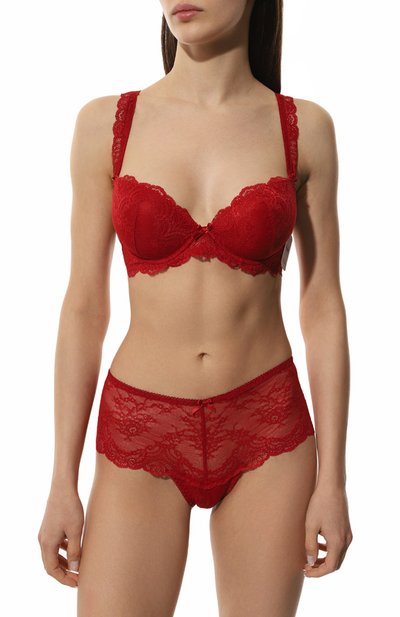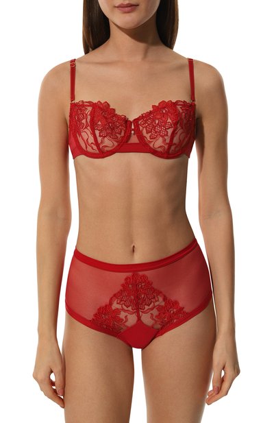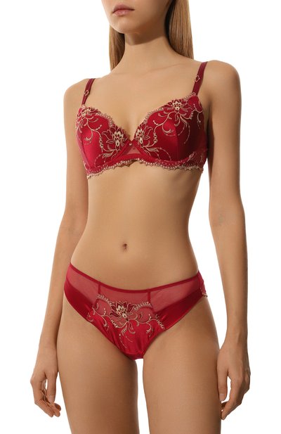 В линию Splendeur Soie вошел бюстгальтер из шелкового атласа и фестончатого тюля с вышитым узором. Белье с регулируемыми бретелями и подвеской с кристаллами Swarovski между мягкими чашечками на косточках застегивается двумя трехп озиционными крючками.