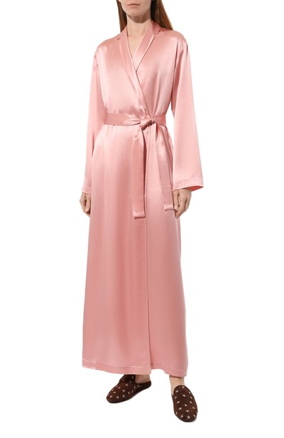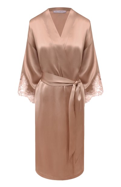 Дизайнеры марки доказали, что даже нейтральный бежевый оттенок может выглядеть выразительно. Игру полутонов, делающую цвет глубже, создает тонкий шелковый атлас, из которого выполнили модель. Эту же ткань использовали для изготовления длинного пояса-ленты, заменяющего застежку. Для отделки выбрали нежное кружево.
