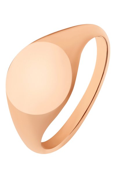 Небольшая печатка из стерлингового серебра покрыта розовым золотом. Отсутствие сверкающих камней и рельефной гравировки создает впечатление фундаментальности украшения и не отвлекает от его плавных изогнутых линий. Такое кольцо хорошо смотрится как сольно, так и в сочетании с другими аксессуарами.
