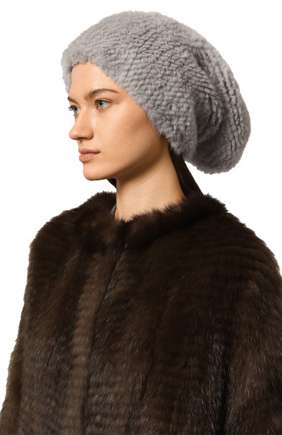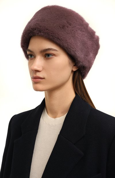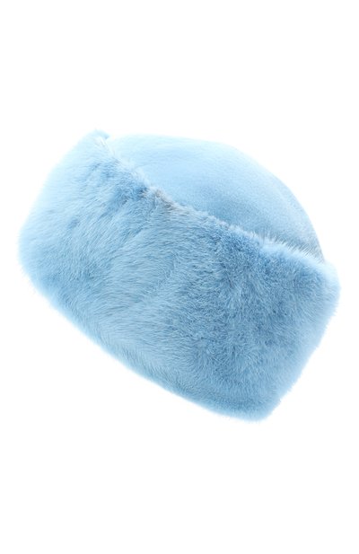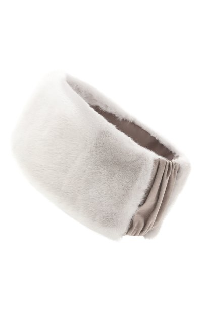Ободок, стилизованный под чалму, выполнили из меха норки голубого оттенка. Широкую резинку сзади обтянули нежной тканью.