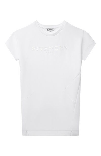 Белое платье-футболка с круглым вырезом и короткими рукавами станет идеальным решением для прогулки в знойный день. Модель сшили из мягкого хлопка джерси, который хорошо пропускает воздух и быстро отводит влагу. О принадлежности марке говорит потертый логотип с голографическим эффектом.