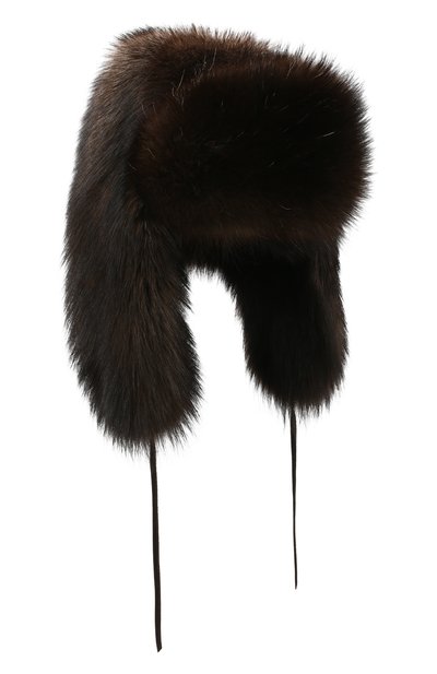 Для пошива шапки глубокого шоколадного оттенка мастера марки использовали нежный шелковистый мех фишера. Материал не боится мокрого снега, поэтому изделие останется опрятным после длительных прогулок. Широкие наушники дополнительно защищают от холодного ветра.