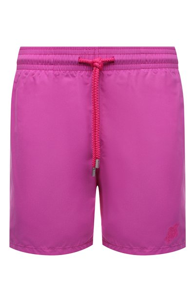 Ярко-розовые плавки-шорты с поясом-кулиской и тремя карманами сшиты из быстросохнущего текстиля, на поверхности которого после намокания появляются изображения черепах. Легкая модель с бесшовной гипоаллергенной подкладкой и сквозными люверсами не прилипает к телу и не вздувается при погружении в воду.