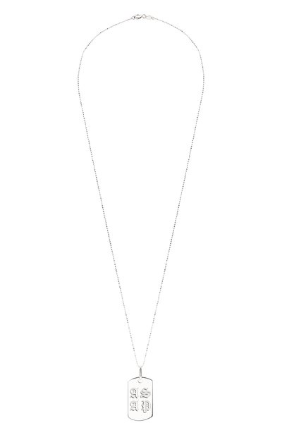 Дизайн серебристого кулона позаимствовали у армейского жетона. Аксессуар на тонкой цепочке с круглыми звеньями выполнили из легкого прочного ювелирного сплава с глянцевым гальваническим покрытием. Одну строну подвески декорировали литерами, другую – девизом «Always strive & prosper», выгравированными в готическом стиле.