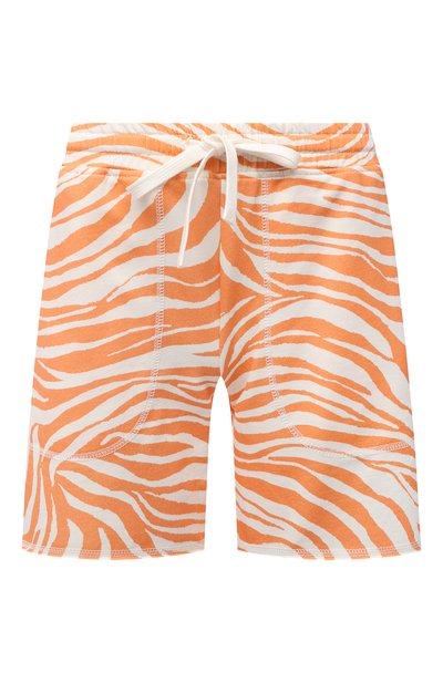Короткие свободные шорты обеспечат комфорт во время отдыха. Анималистичный принт подчеркнули насыщенным оранжевым оттенком, который бодрит ничуть не хуже, чем цитрусовый фрэш. Для пошива изделия использовали мягкий хлопковый трикотаж.