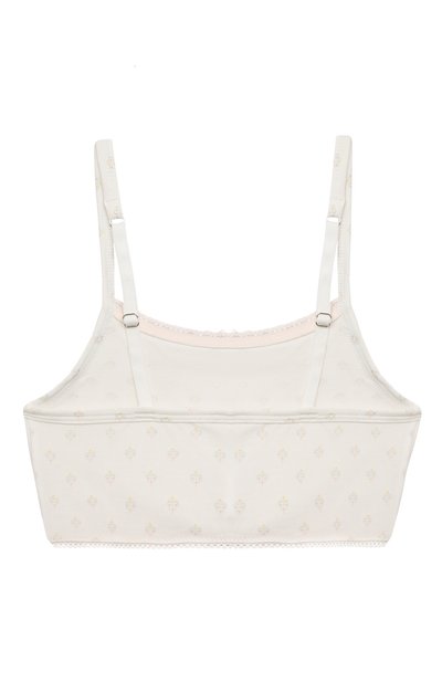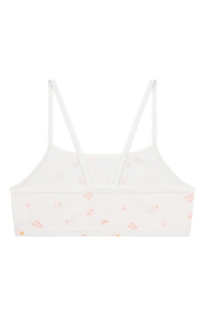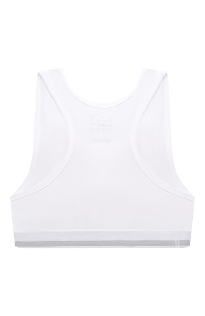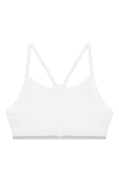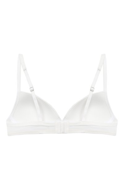 Белоснежное бра из мягкого тонкого хлопка джерси идеально садится по фигуре благодаря узкому эластичному поясу в полоску. Однотонная дышащая модель с Y-образной спинкой и съемными вставками-подушками почти не ощущается на теле.