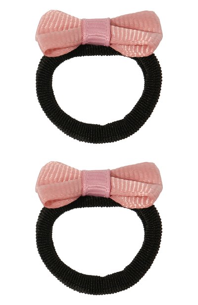 Черную резинку выполнили из эластичного трикотажа, которому придали легкий блеск нити ламе в составе. Чтобы аксессуар получился наряднее, его декорировали небольшим объемным бантом из репсовой ленты нежного пудрового оттенка. В комплект вошла еще одна точно такая же модель.