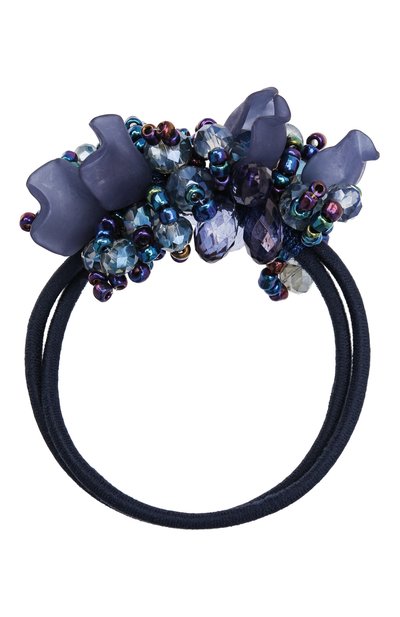 Темно-синяя резинка выполнена из мягкого эластичного текстиля. Материал не повреждает волосы, а также не деформируется со временем. Две части аксессуара соединили между собой композицией из переливающегося всеми цветами радуги бисера, благородно мерцающих граненых бусин и полупрозрачных объемных элементов. Особенно эффектно такой декор будет смотреться при ярком свете.