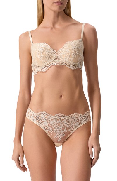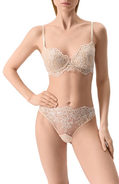 Стринги с атласными вставками по бокам выполнили из микрофибры и тюля с вышитым цветочным мотивом. Трусы из коллекции Royal Jewel дополнили дышащей хлопковой ластовицей.