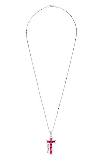 Мастера марки выполнили подвеску в виде креста, инкрустированного сверкающими кристаллами, из легкого ювелирного сплава, который не темнеет и не деформируется со временем. Из этого же материала изготовили узкую цепочку с небольшой застежкой-карабином.