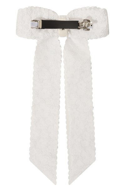 Крупная заколка в виде белоснежного бутона розы автоматически сделает образ наряднее. Для изготовления аксессуара мастера марки использовали шелковистый материал, который хорошо держит форму. Модель фиксируется на локонах при помощи рифленого металлического зажима.