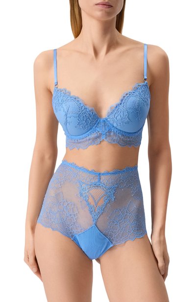 Для пошива хипстеров со средней посадкой и фестончатыми краями использовали ажурное кружево Leavers с цветочным мотивом. Трусы из линии Sublime En Dentelle дополнили хлопковой ластовицей.