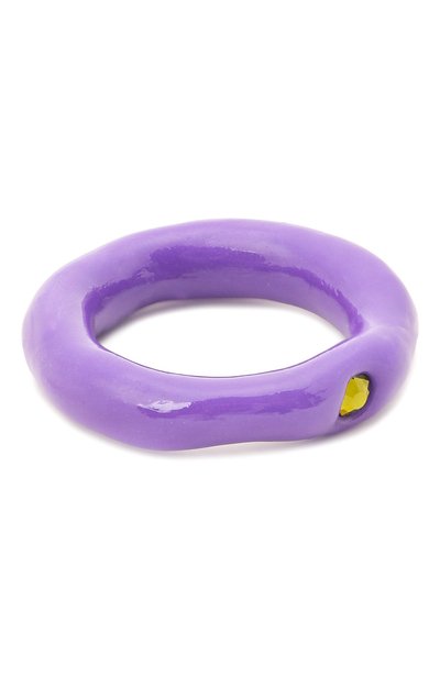Ярко-сиреневое кольцо — легкий и верный способ поставить акцент в образе. Выделиться украшению помогает как цвет, так и намеренно несовершенная форма, которая стала узнаваемой чертой аксессуаров марки. Завершающий штрих в модели из полимерной глины поставили миниатюрным желтым кристаллом Swarovski.