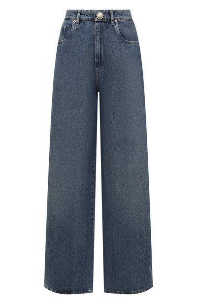 Синие джинсы с небольшими декоративными потертостями легко справляются с многозадачностью. Расклешенная модель из плотного мягкого хлопка одинаково хорошо подстроится как под футболку и кеды, так и под блузу и туфли. Изделие, украшенное сзади небольшим принтом в виде логотипа бренда, вошло в осенне-зимнюю коллекцию.