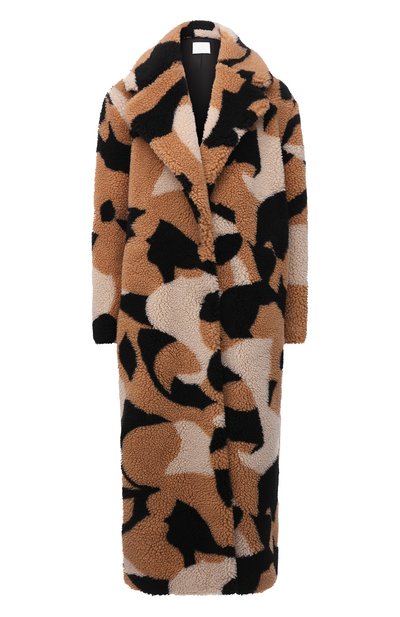Прямая бежевая шуба с абстрактным узором доказывает, что оставаться модной можно и в русские морозы. Для пошива модели с широкими лацканами мастера марки, основанной Хуго Фердинандом Боссом, использовали стилизованный под стриженую овчину искусственный мех. Его произвели из переработанного полиэстера, что позволило уменьшить углеродный след и количество полимерных и текстильных отходов. Вещь вошла в осенне-зимнюю коллекцию.