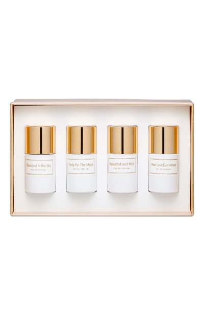Набор дорожных миниатюр (четыре по 15 мл) знакомит с ароматами-бестселлерами из коллекции Original. В сладком гурманском Diamond In The Sky доминируют лесные ягоды в сливочной карамели. В нежном Wear Love Everywhere распускаются зефирные розы, окутанные сандалом. Искрящийся Party On The Moon раскрывается терпким чаем, черной смородиной и фиалками. А Beautiful and Wild гипнотизирует прохладной фрезией с блестками личи.