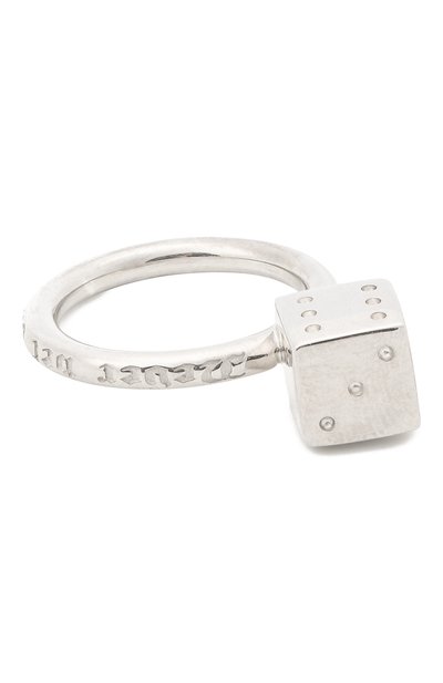 Дизайнер марки представила свою версию кольца: роль центрального камня здесь играет фигурная деталь в виде игральной кости. Для изготовления модели использовали прочный ювелирный сплав, который не потемнеет со временем. Такое украшение выглядит самодостаточно и не терпит конкуренции с другими аксессуарами на пальцах.
