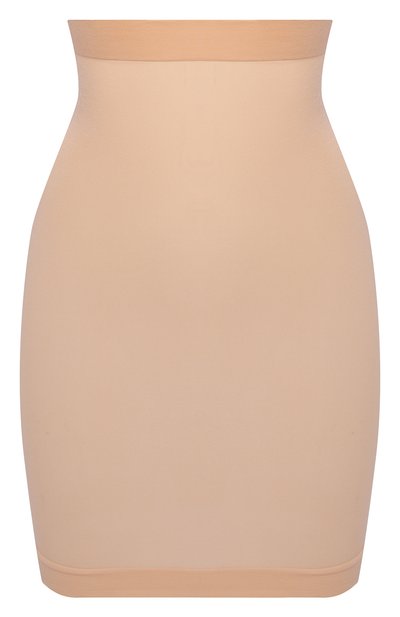 Бежевая корректирующая юбка с высокой посадкой на талии поможет сформировать идеальный силуэт. Эластичный шелковистый трикотаж на основе вискозы, из которого сшита модель, визуально уменьшает объемы, подчеркивая при этом женственность фигуры.