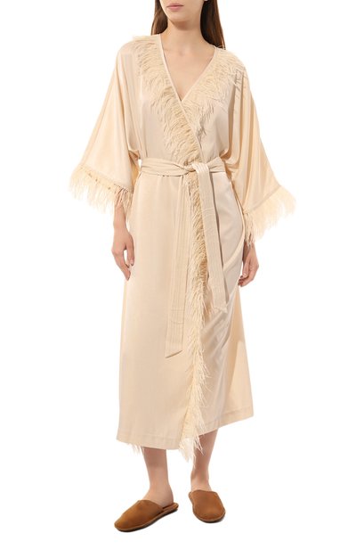 | Параметры изделия для размера 44 Обхват груди 110 см, длина рукава от плечевого шва 61 см, длина изделия по спинке 105 см. В комплект входит: пояс. |