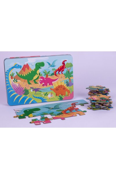 Пазл из 24 деталей складывается в двухметровый поезд с множеством вагонов. Для изготовления головоломки, упакованной в коробку-домик, использовали плотный картон.