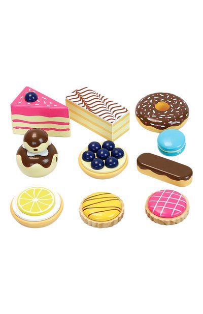 Набор из 12 пирожных поможет ребенку старше двух лет устроить сладкую вечеринку для кукол или открыть собственную кондитерскую. Для изготовления игрушек использовали прочное дерево, обработанное до идеальной гладкости. Изделия окрасили вручную безопасными красками, которые долго не теряют ярк ость и не вызывают аллергию.