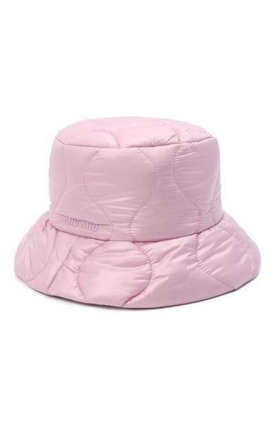 Для пошива панамы с узкими полями и высокой тульей использовали прочный непромокаемый нейлон с перламутровым блеском. Слой легкого наполнителя делает объемнее фигурный стеганый узор и роднит головной убор с фирменными пуховиками. Спортивный характер модели смягчает нежный оттенок клубничных леденцов.