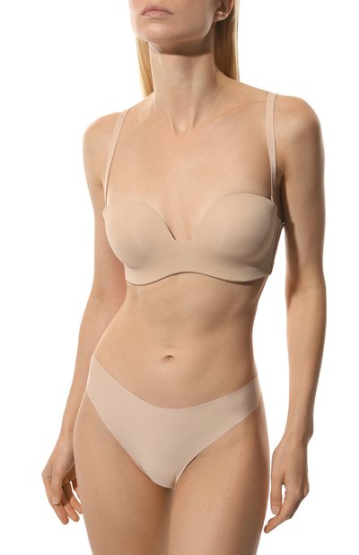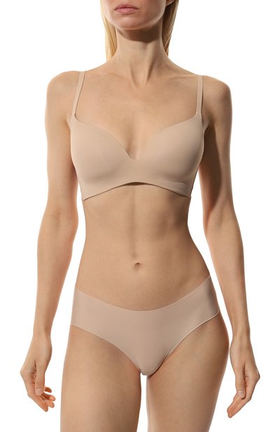 Бесшовные трусы из линии Essentiel не будут выделяться даже под облегающей одеждой. Модель с хлопковой ластовицей сшили из эластичного нейлона и дополнили спереди вставкой из нежного тюля.