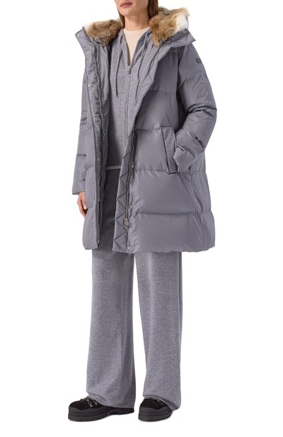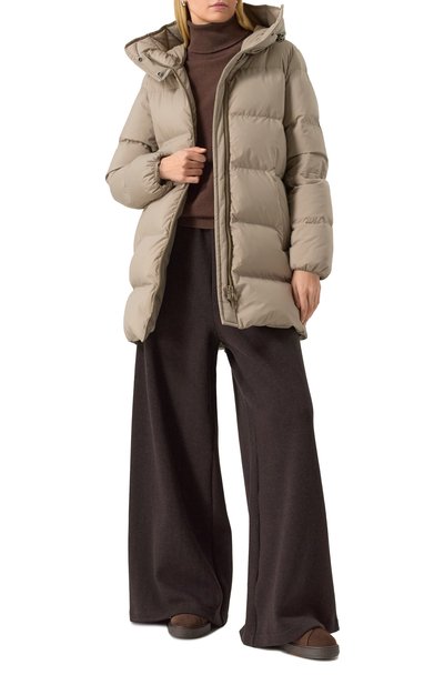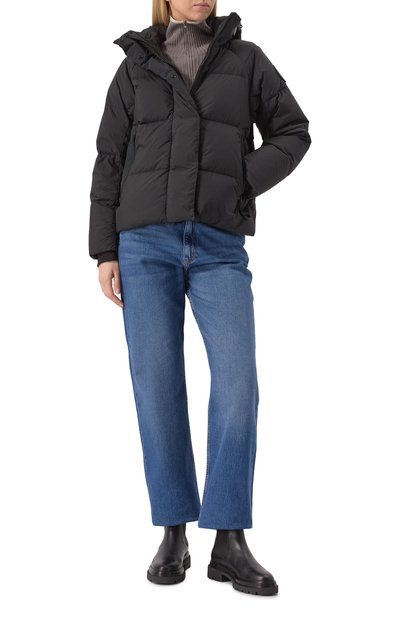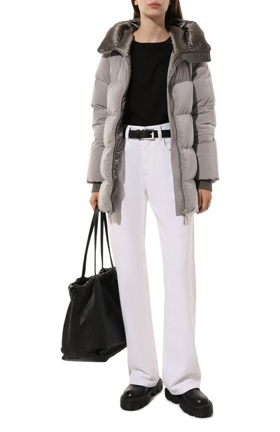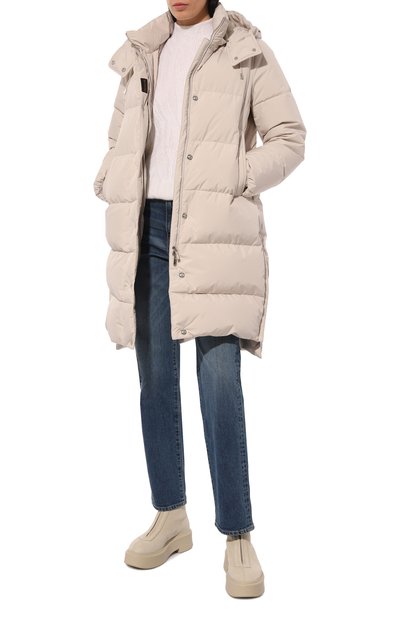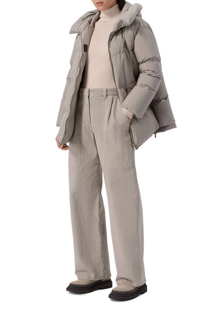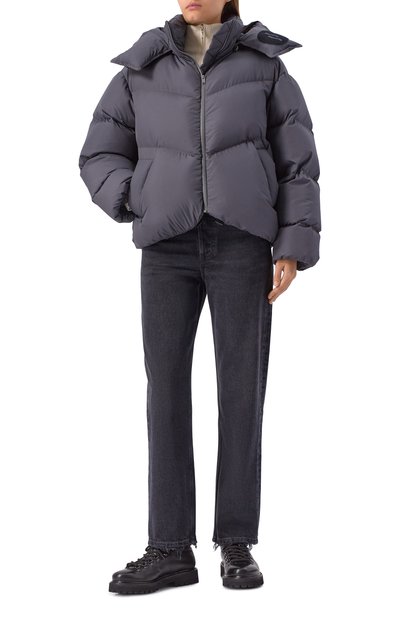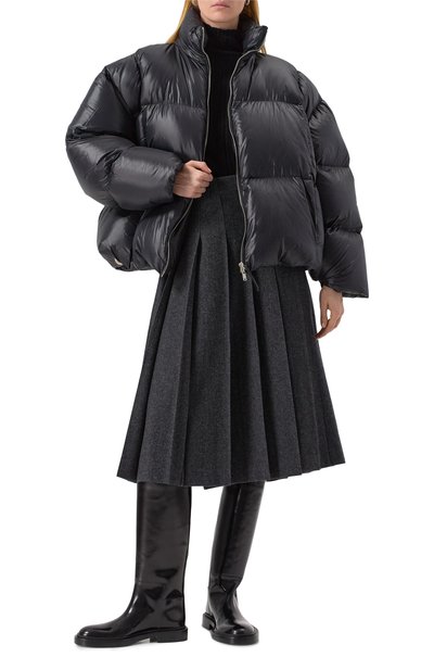 Создавая пуховик из осенне-зимней коллекции, Миучча Прада объединила черты одежды для активного отдыха и спокойных городских прогулок. Это отразилось в выборе материала: вместо традиционной для таких курток гладкой ткани для пошива модели использовали прочный деним. Его окрасили так, чтобы подчеркнуть стеганый мотив, объем которому придает легкий утеплитель из отборного гусиного пуха.