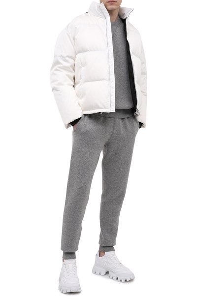 В сезоне осень-зима Миучча Прада и Раф Симонс размышляли на тему посткарантинного гардероба. По их мнению, основу в нем займет универсальная база, но не привычная, а улучшенная. Например, серый меланжевый джемпер дизайнеры вывели на новый уровень комфорта, заменив традиционную шерстяную пряжу нежнейшей кашемировой. Она почти невесомая, по-особенному мягко ощущается на теле и согревает в восемь раз лучше.